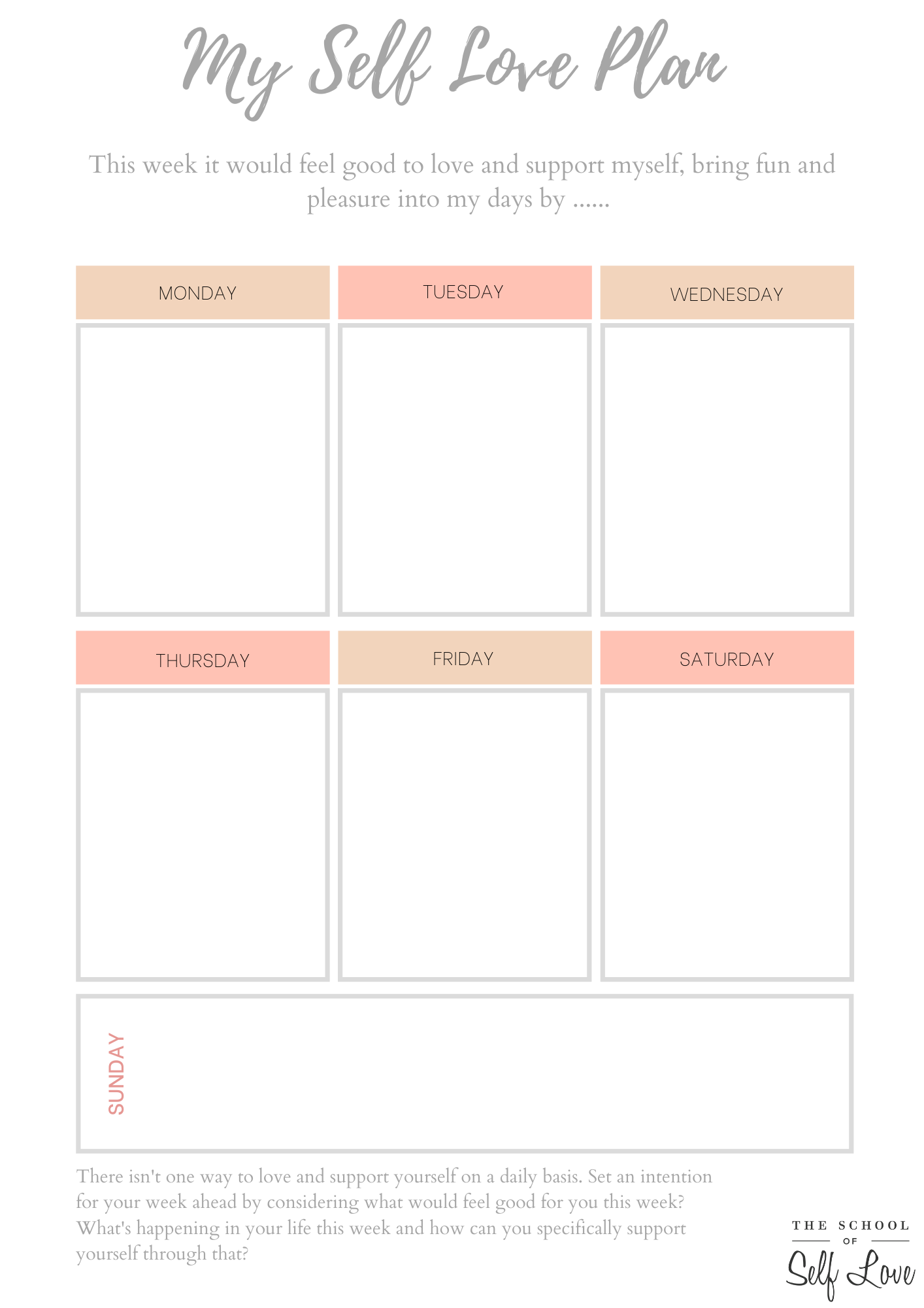 After watching the videos, use the 'My Daily Practice' sheet to create your own plan for the week ahead. Maybe you can set your intention every Sunday for how you will love yourself in the upcoming week.