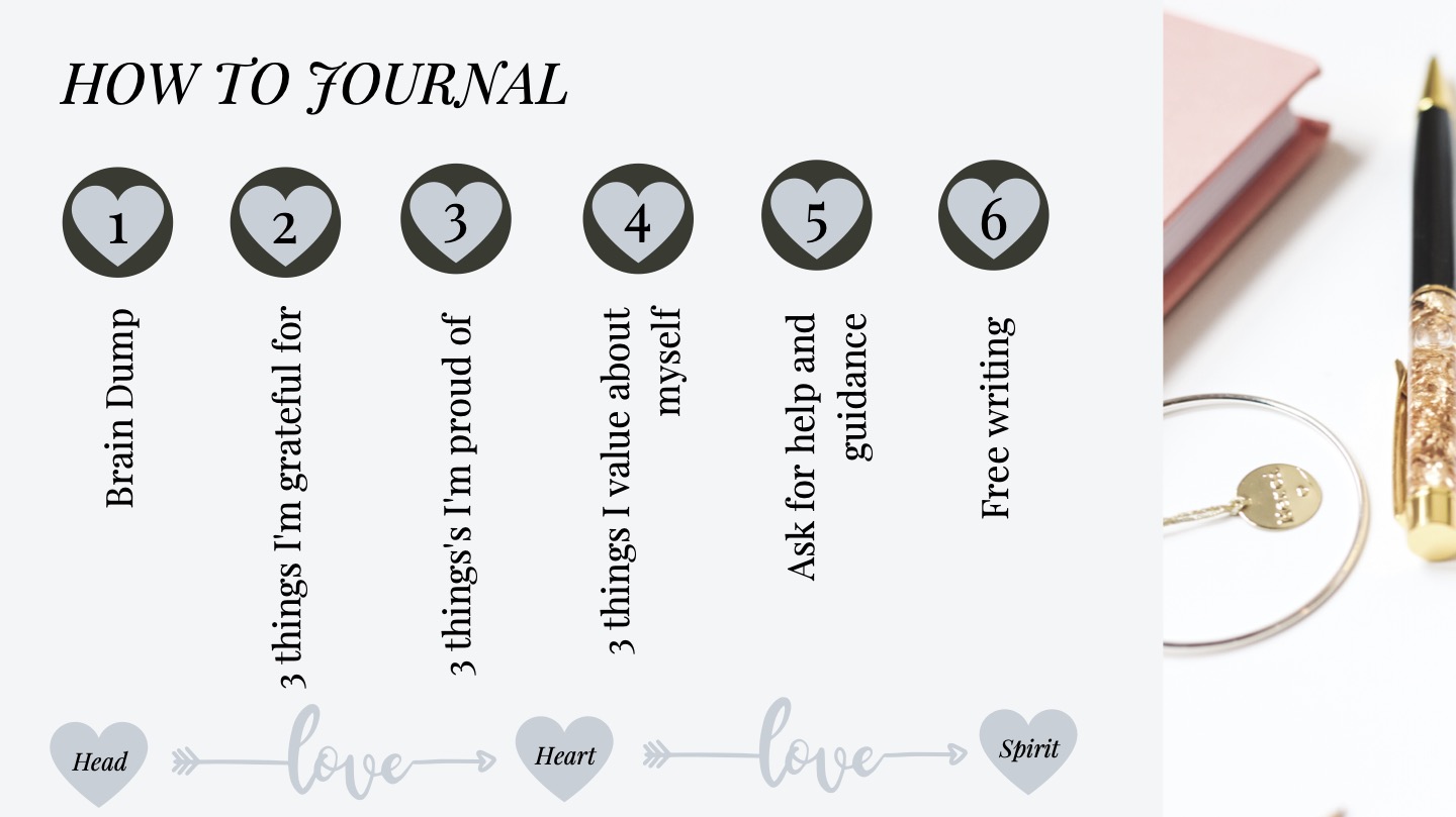 The 'how to journal' image below is a visual guide you can follow along with a link that will enable you to download that image and pop it inside your journal for easy reference.